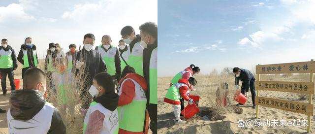 2022年12月24日,由上汽通用汽車和中國生態(tài)文明研究與促進會以及武威市環(huán)境保護產(chǎn)業(yè)協(xié)會聯(lián)合發(fā)起的“綠動未來”環(huán)保公益平臺,發(fā)動甘肅當(dāng)?shù)氐闹驹刚?,攜手治沙英雄、“全國勞動模范”石述柱的傳人,在甘肅民勤縣騰格里沙漠種下10,000余棵梭梭樹,落成又一片“綠動未來愛心林”。